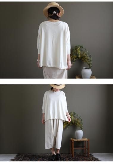 緩やかなVネックと落ち感のあるしなやかなラインが、女性らしく上品な印象です。