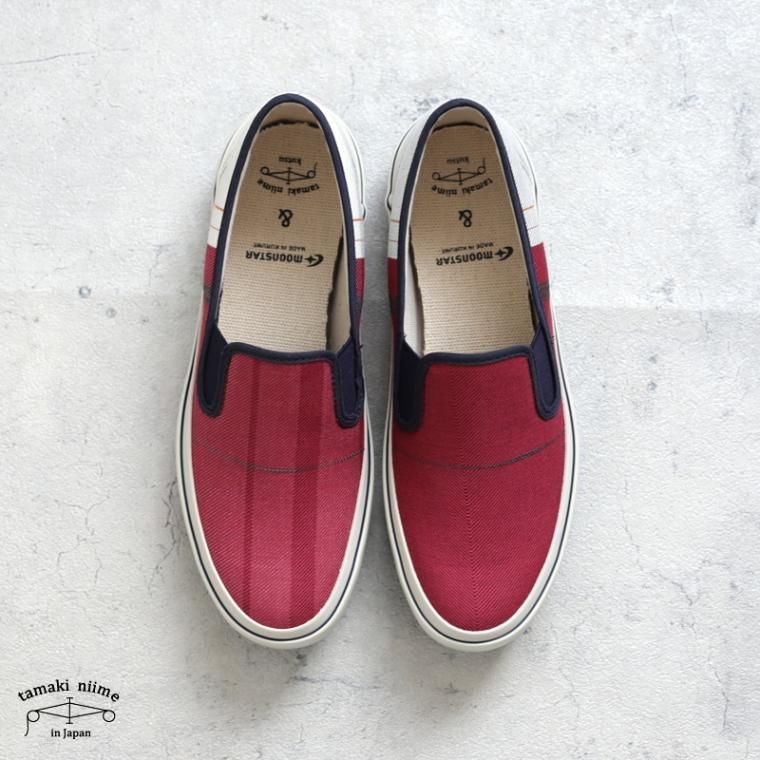 こちらはtamaki niimeのファブリックを使用し、「moonstar」がスリッポンに仕立てた