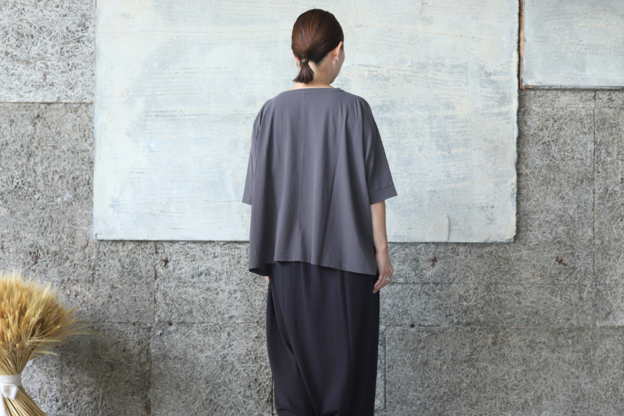 身幅もゆったりと仕立てられ、しなやかなドレープ感を生かした柔らかなシルエットもポイントです。