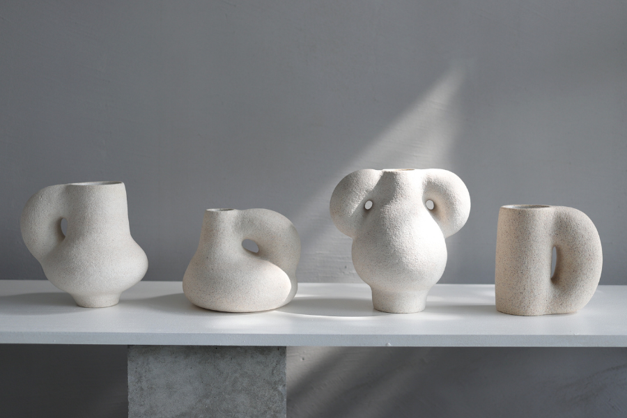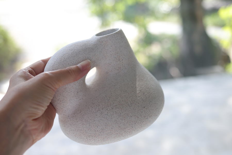 陶土に自らが採集した海の砂を混ぜて制作される入江佑子さん。