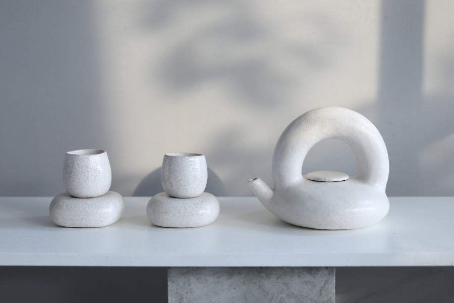 陶土に自らが採集した海の砂を混ぜて制作される入江佑子さん。