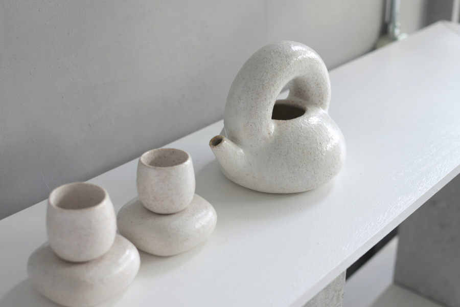 陶土に自らが採集した海の砂を混ぜて制作される入江佑子さん。