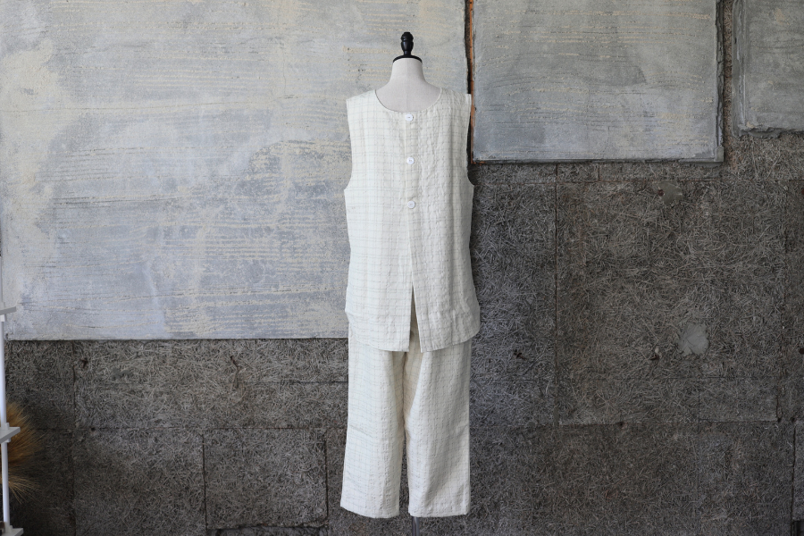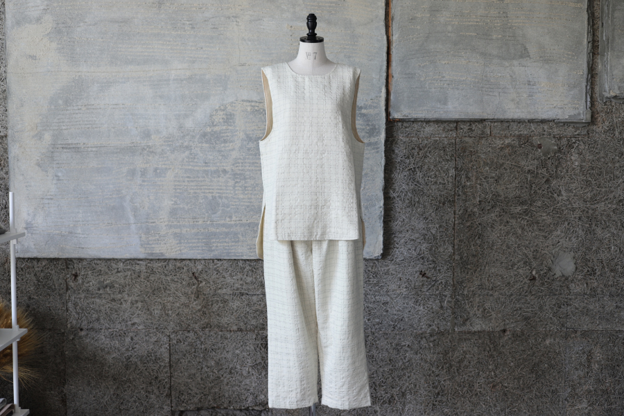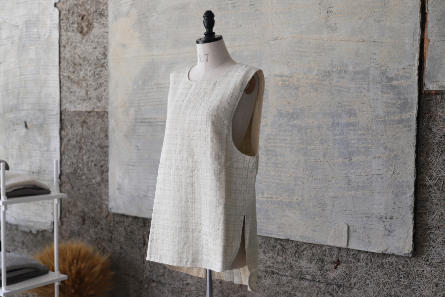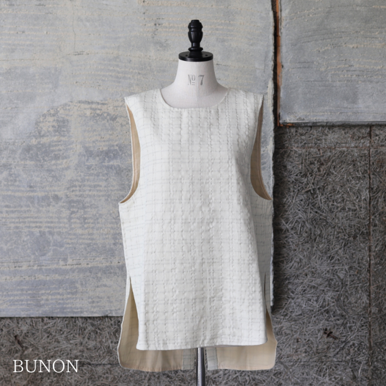 BUNONのカディウールで仕立てたスリーブレスプルオーバーです。