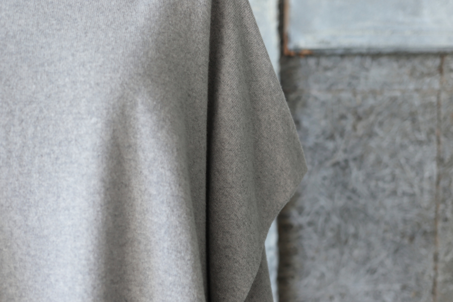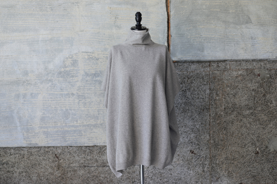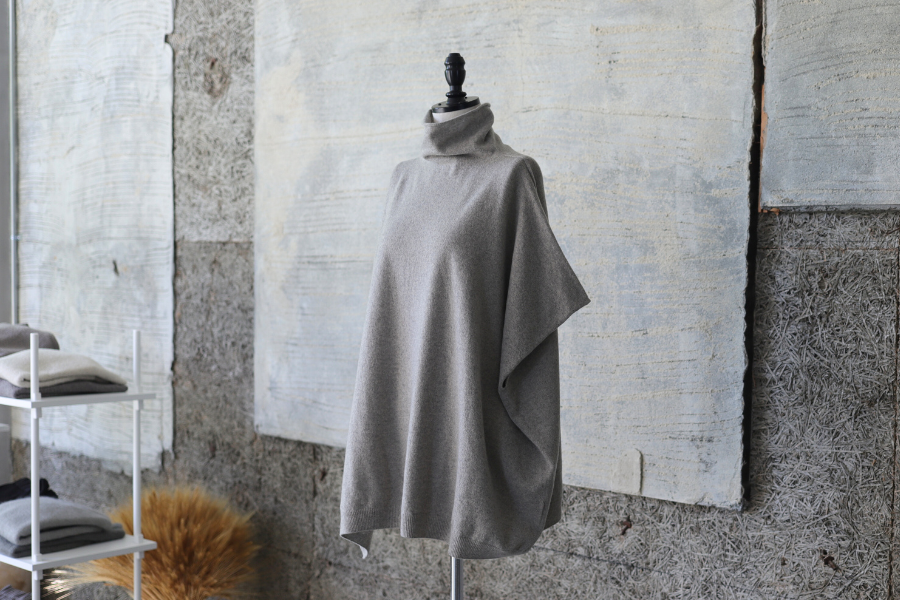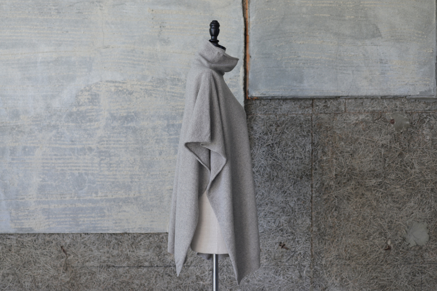 柔らかく、ふくらみのある風合いと軽い着心地とゆったりとしたシルエットでさまざまな着合せを愉しめるポンチョです。