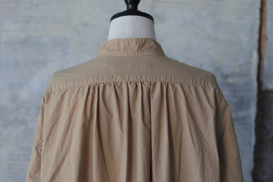 ハリのある風合いが良く出ています。製品染めをすることで洗いざらしの似合うカジュアルな雰囲気に仕上げました。