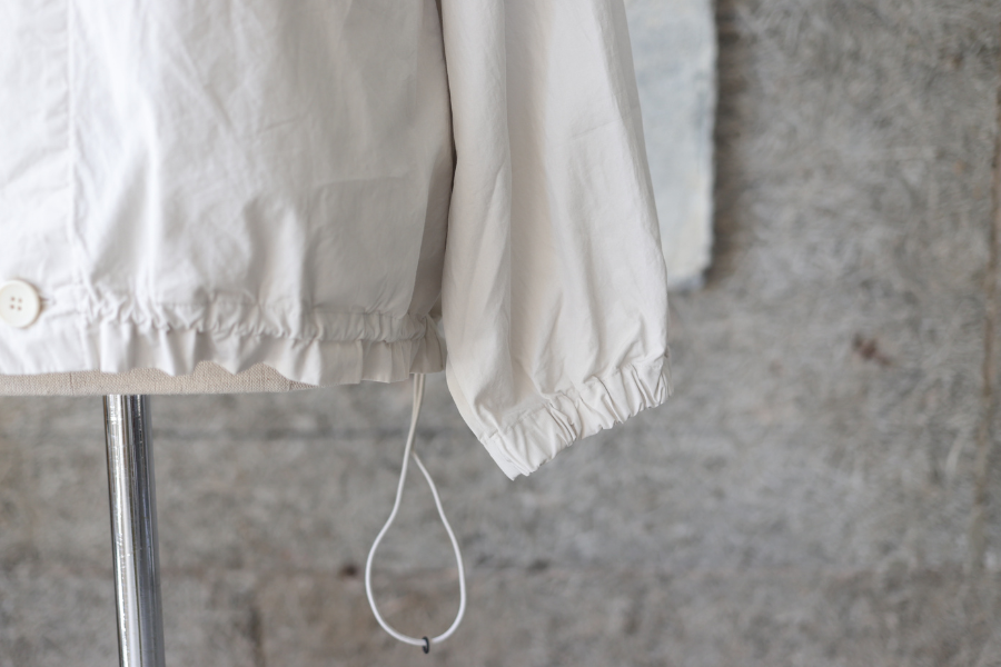 ゆとりのあるボックスシルエット。裾にドローストリングが付いており、絞ることで着こなしの変化をたのしめます。