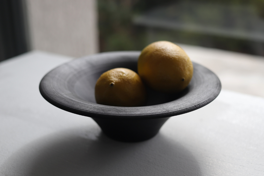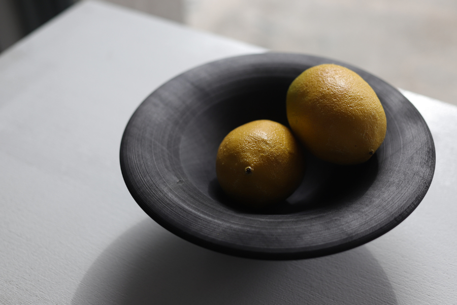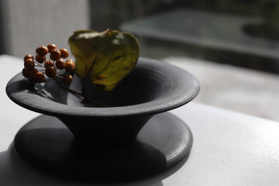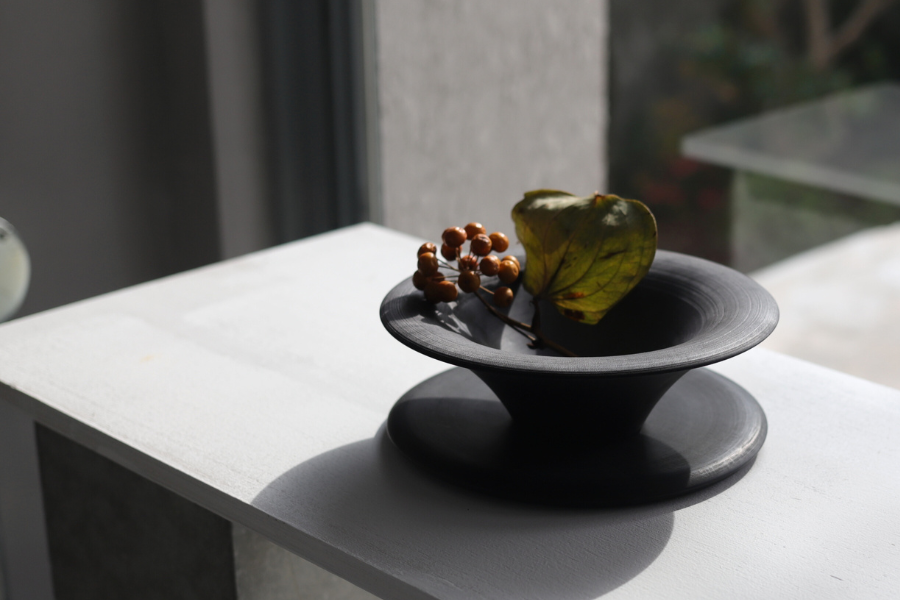 木そのままの器や、草木染めを施しガラスコーティングで仕上げた器と匙などを作られています。