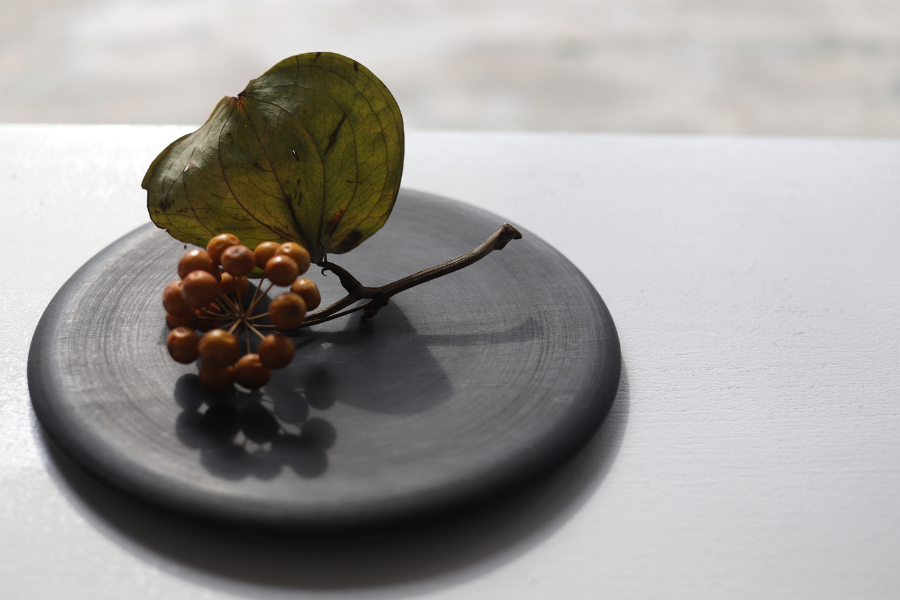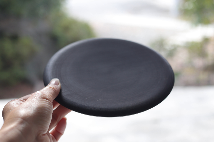 こちらは北山栄太さんの木目がうつくしい黒のプレートです。