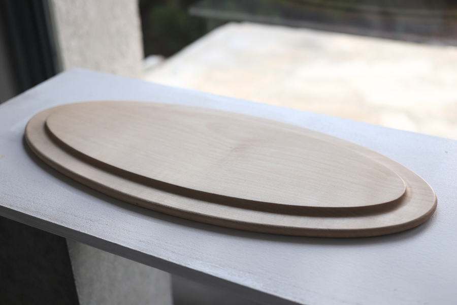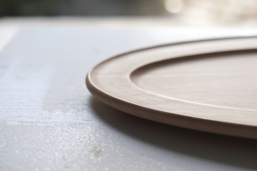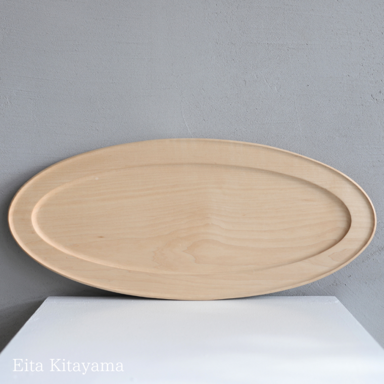 こちらは北山栄太さんの木目がうつくしい楕円のプレートです。