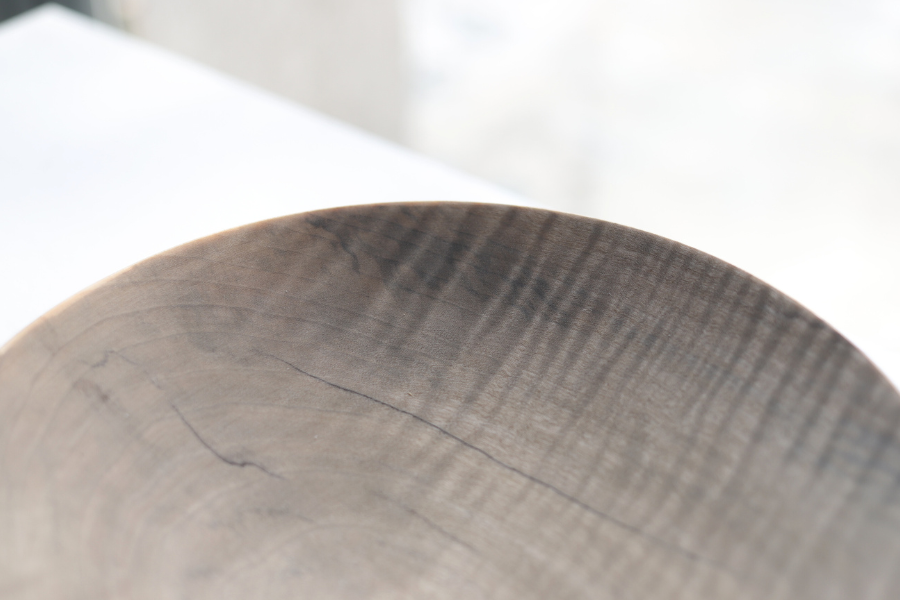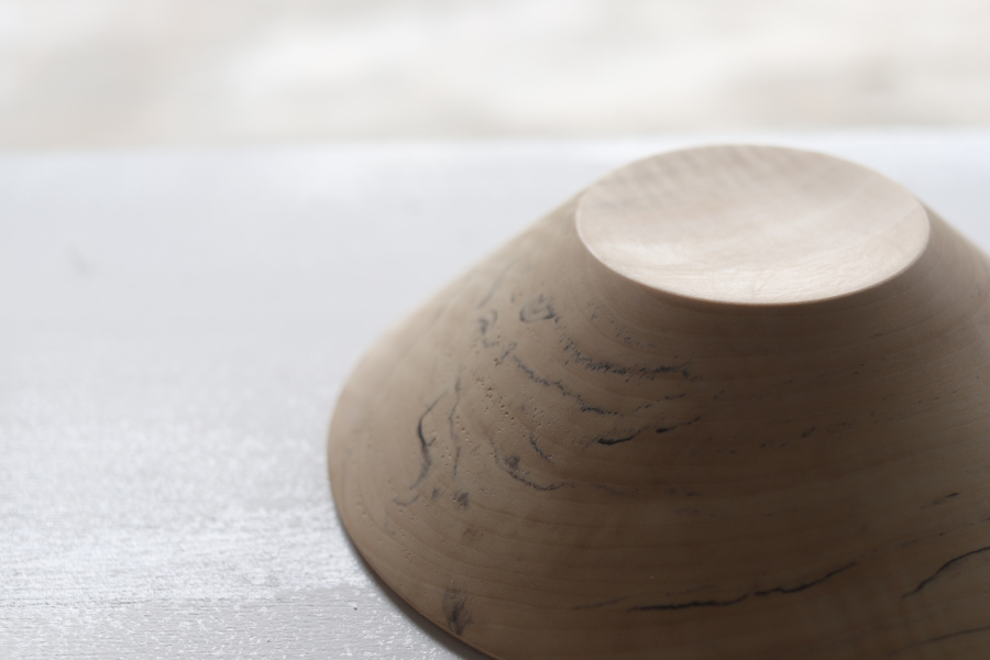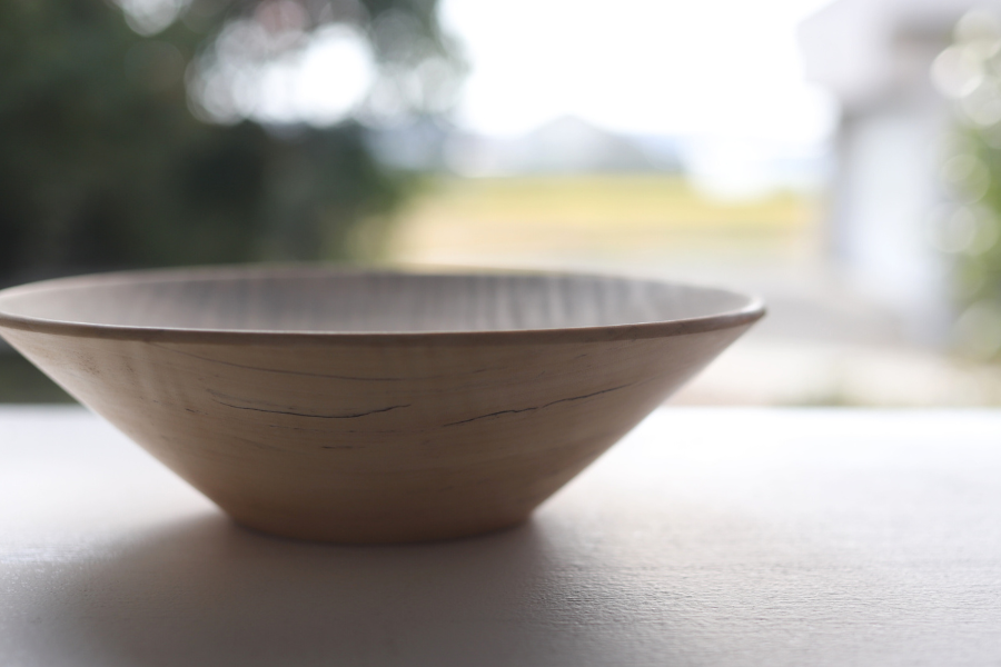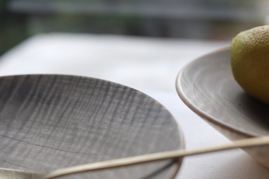 木そのままの器や、草木染めを施しガラスコーティングで仕上げた器と匙などを作られています。