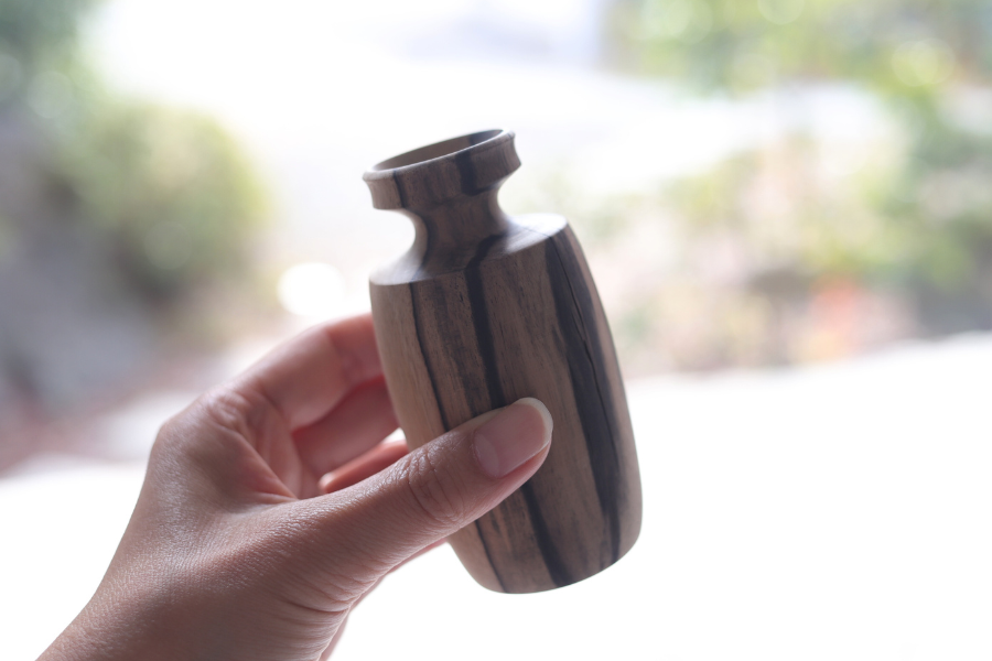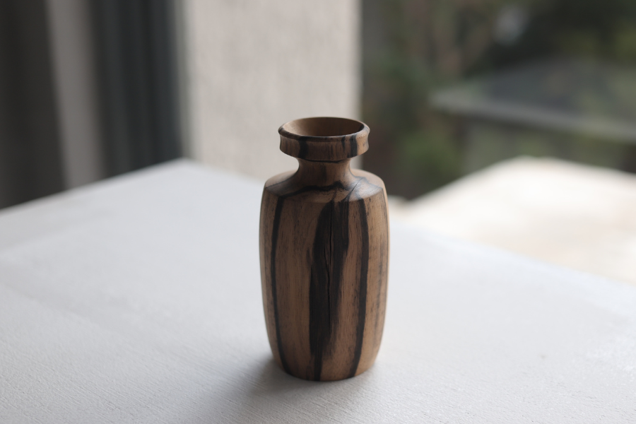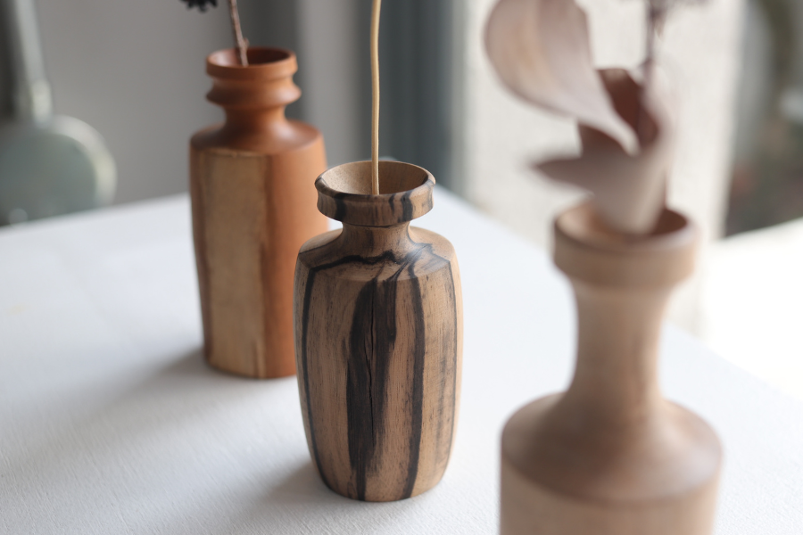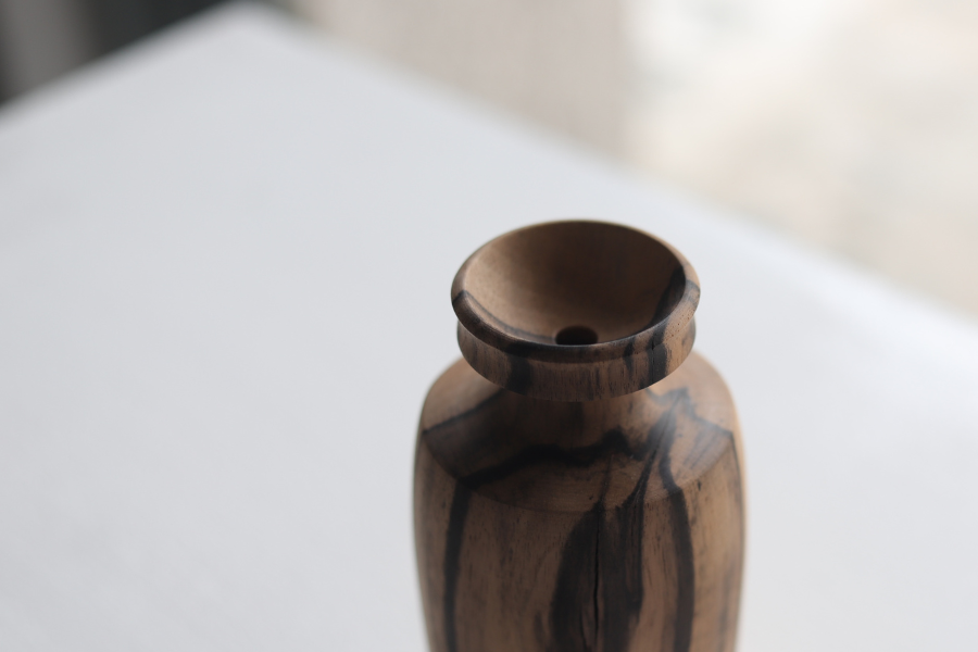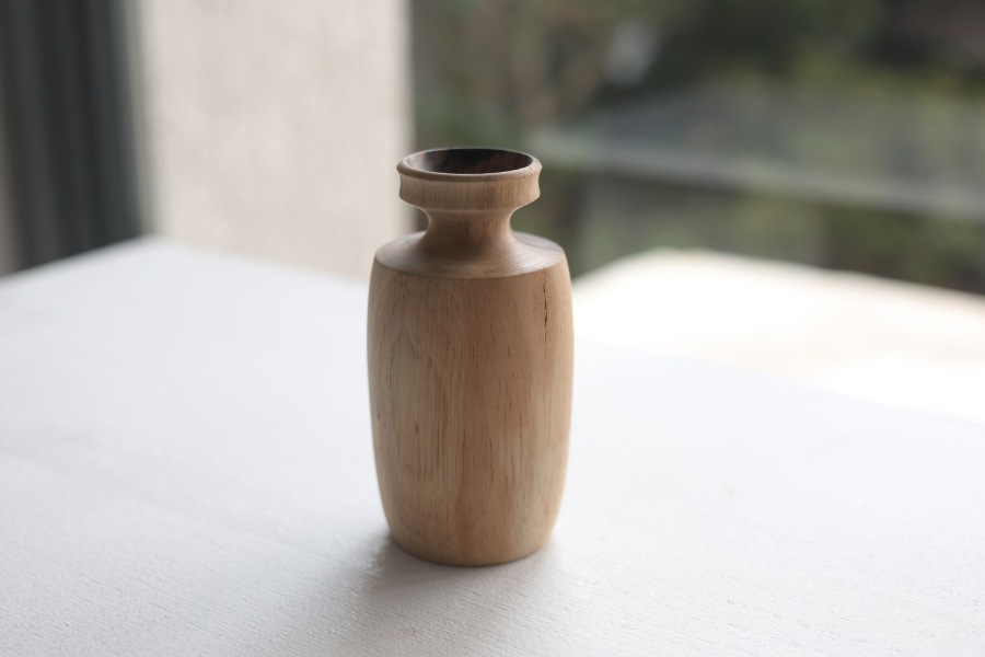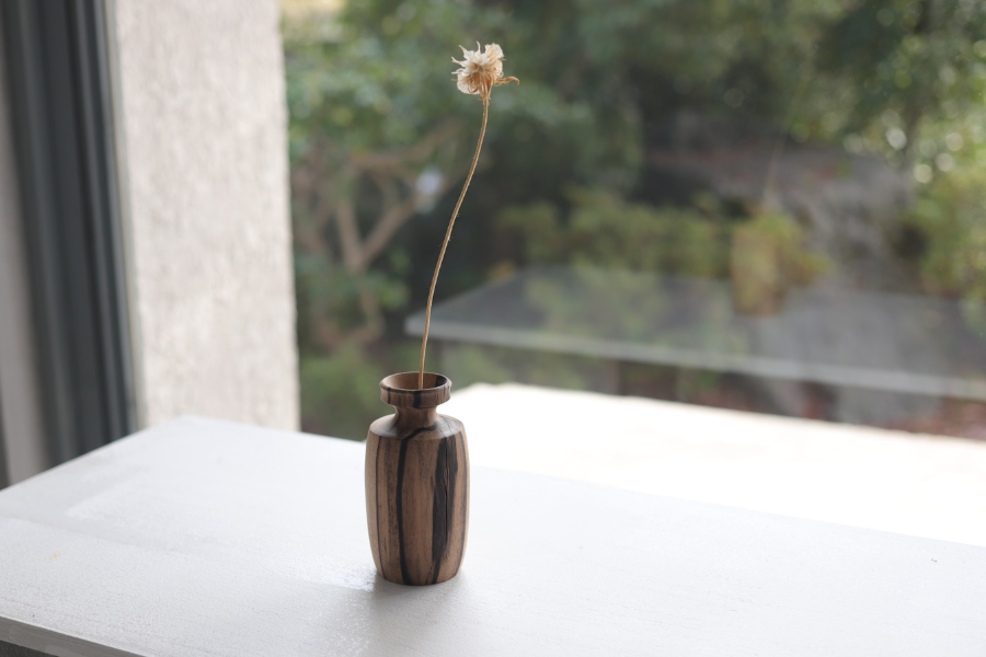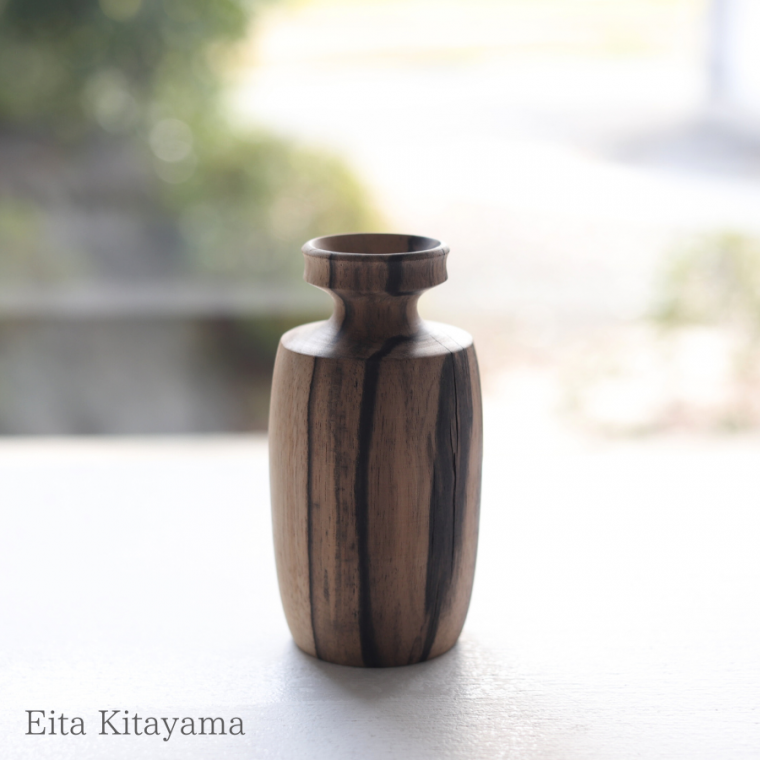 こちらは北山栄太さんの木目がうつくしいドライフラワーベースです。